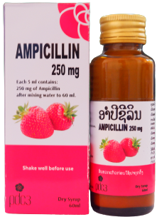 and pelvic infections. ຊື່ການຄ້າ/Product Nam: AMPICILLIN ສ່ວນປະກອບ/ Composition Each 100ml contains:Ampicillin 250mg ຂະໜາດ Size: 60ml ການບັນຈຸ / Packaging: 6fl x 14 packs/carton ຄຸນປະໂຫຍດ/ Indication - ເປັນຢາຕ້ານເຊື້ອໃຊ້ປິ່ນປົວການຕິດເຊື້ອລະບົບທາງເດີນຫາຍໃຈ, ລະບົບປັດສະວະ, ປິ່ນປົວການຕິດເຊື້ອຕາມຜິວໜັງ, ເນື້ອເຍື່ອແລະ ກະດູກສະໂພກ - Treatment of respiratory, urinary tract infection, skin and soft tissue and pelvic infections. ຊື່ການຄ້າ/Product Nam: PROMETHAZINE ສ່ວນປະກອບ/ Composition Each 100ml contains: Promethazine HCL 6.25mg ຂະໜາດ Size: 60ml ການບັນຈຸ / Packaging: 6fl x 14 packs/carton ຄຸນປະໂຫຍດ/ Indication -