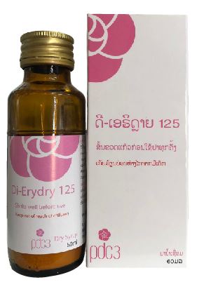 ![]() | ຊື່ການຄ້າ/Product Nam: DI-ERY DRY ສ່ວນປະກອບ/ Composition Each 100ml contains: Erythromycin 125mg ຂະໜາດ Size: 60ml ການບັນຈຸ / Packaging: 6fl x 14 packs/carton ຄຸນປະໂຫຍດ/ Indication -