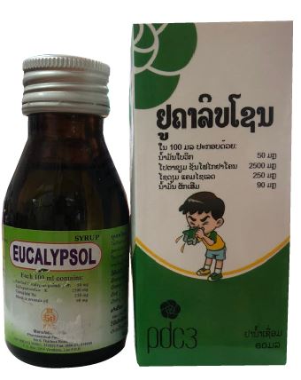 ໃຊ້ປິ່ນປົວອາການແພ້ຕ່າງໆເຊັ່ນ: ແພ້ຝຸ່ນລະອອງ, ແພ້ອາກາດ - Treatment itching throat, help alleviate cough, cough, cold, cough bronchial pneumonia. - Treatment allergy such as allergy dust, allergy air. ສ່ວນປະກອບ/ Composition Each 100ml contains: Purified Eucalyptus globulus