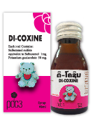 ເປັນຢາແກ້ອາການແພ້, ເປັນຫືດ, ໄອ, ແກ້ອາການຕຸ່ມຄັນຕາມຜິວໜັງ ແລະ ລະງັບປະສາດ. - The treatment of all allergic conditions as hypersensitivity reaction, spasmodic bronchial, cough, skin disorders and sedative ຊື່ການຄ້າ/Product Nam: DI-COXINE ສ່ວນປະກອບ/ Composition Each 100ml contains: Salbutamol 1mg ຂະໜາດ Size: 60ml ການບັນຈຸ / Packaging: 6fl x 14 packs/carton ຄຸນປະໂຫຍດ/ Indication -