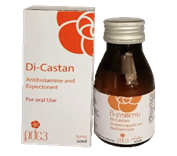 ເນື້ອເຍື່ອຕາອັກເສບຈາກການແພ້, ແກ້ອາການຄັນຈາກພະຍາດຜິວໜັງຕ່າງໆ, ເປັນຫວັດ ແລະ ໄອເນື່ອງຈາກແພ້ອາກາດ. - The symptomatic relief of allergic states generally responsive to antihistamines, such as hay fever, urticarial, drug reactions, food allergy, also in allergic conjunctivitis, atopic dermatitis, spasmodic bronchial cough and colds. ຊື່ການຄ້າ/Product Nam: DI-CASTAN ສ່ວນປະກອບ/ Composition Each 100ml contains: Chlorpheniramine maleate 1mg ຂະໜາດ Size: 60ml ການບັນຈຸ / Packaging: 6fl x 14 packs/carton ຄຸນປະໂຫຍດ/ Indication -