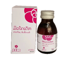 and respiratory insufficiency due to influenza and fever ຊື່ການຄ້າ/Product Nam: MUCODEX ສ່ວນປະກອບ/ Composition Each 100ml contains: Bromhexine Hydrochloride 4mg ຂະໜາດ Size: 60ml ການບັນຈຸ / Packaging: 6fl x 14 packs/carton ຄຸນປະໂຫຍດ/ Indication -