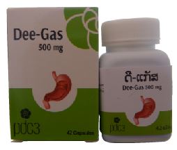 ຂະໜາດ Size:500mg ການບັນຈຸ / Packaging: 200 tabs x 6 fl x 48 pack1000tabs x 68 bottle/carton ຄຸນປະໂຫຍດ Indication - ໃຊ້ປິ່ນປົວທ້ອງບິດ, ຖອກທ້ອງເນື່ອງຈາກການຕິດເຊື້ອ ໃນລະບົບກະເພາະລໍາໄສ້, ໃຊ້ເປັນຢາຂັບນໍ້າບີ - Anti-dysentery, diarrhea, cholagogic, intestinal, Antiseptic ຊື່ການຄ້າ/ Product Name: DEE GAS ສ່ວນປະກອບ/ Composition Each capsule contains: 100% extract from traditional medicinal plants: